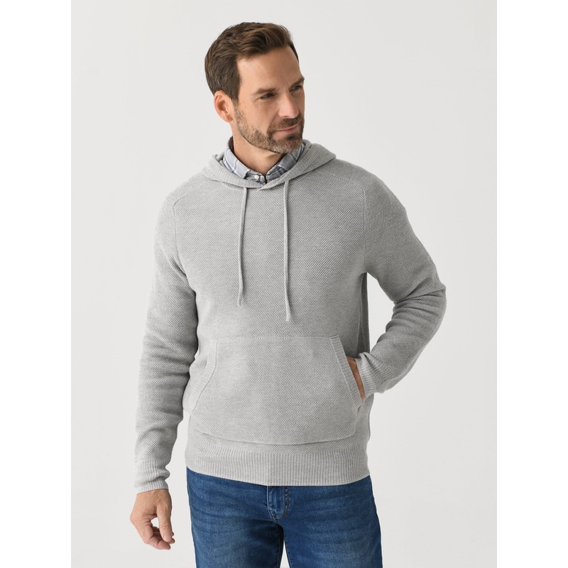 A versatile pullover hoodie made from a soft, midweight knit blend of cotton and polyester.