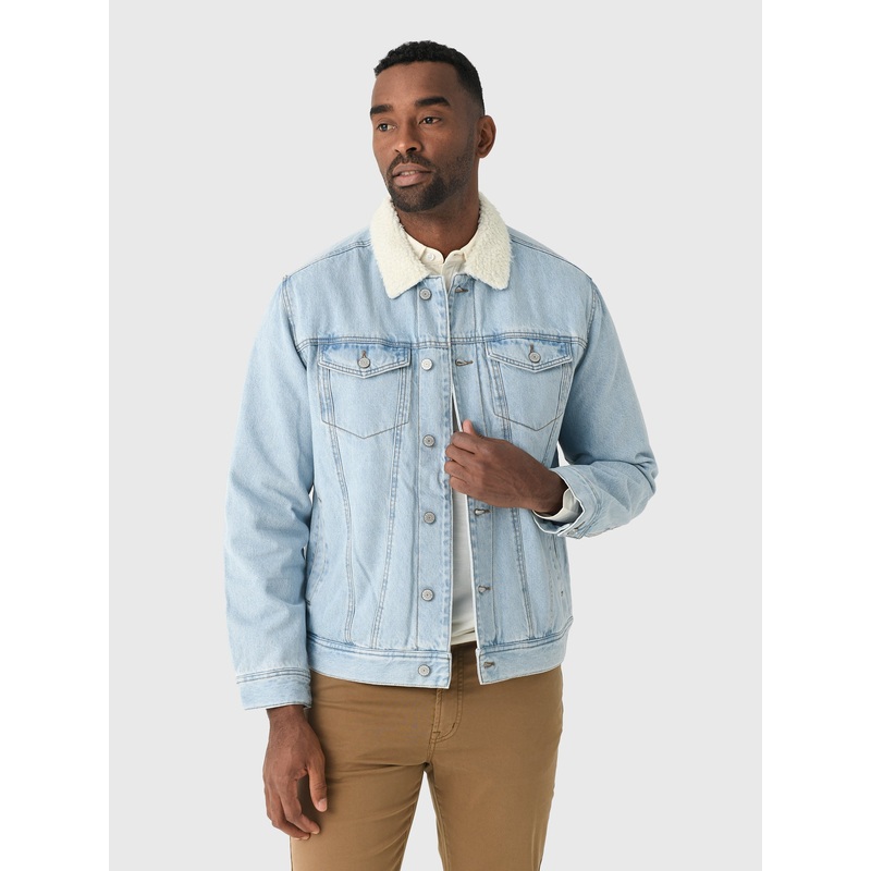 A vintage-inspired jacket for cooler transitional weather. It features a rugged denim canvas exterior and a cozy faux sherpa lining. With a classic fit, chest patch pockets, and a button-down front, it’s the perfect layering piece.