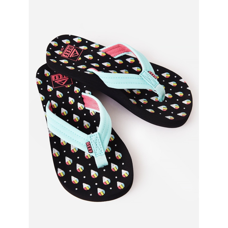 DESCRIPTION:Comfortable flip flop with a colorful printed footbed.FEATURES:Flip FlopRound ToeSoft Synthetic Strap with Webbed LiningPrinted EVA FootbedHigh Density EVA Outsole