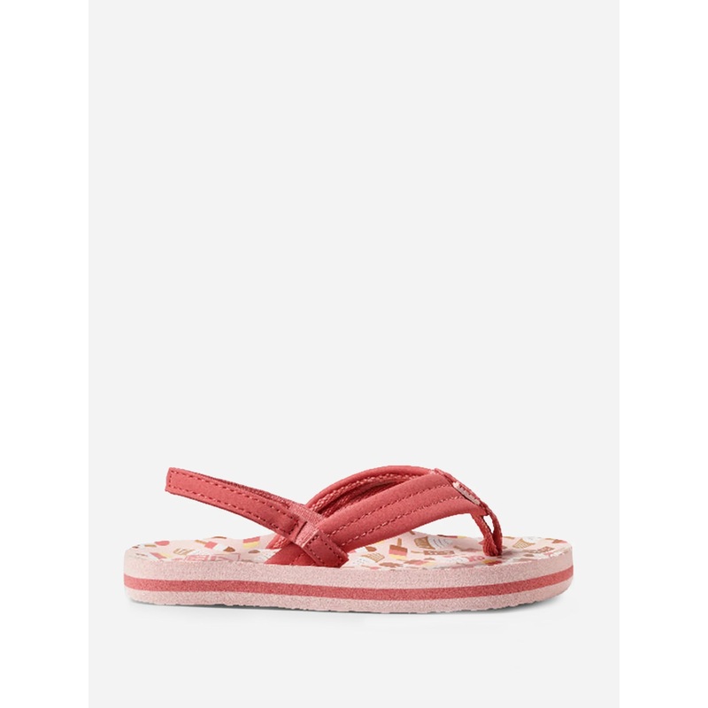 DESCRIPTION:Printed flip flop with a comfortable webbed strap.FEATURES:Flip FlopRound ToeSoft Synthetic Strap with Webbed LiningAdjustable Heel StrapPrinted EVA FootbedHigh Density EVA Outsole