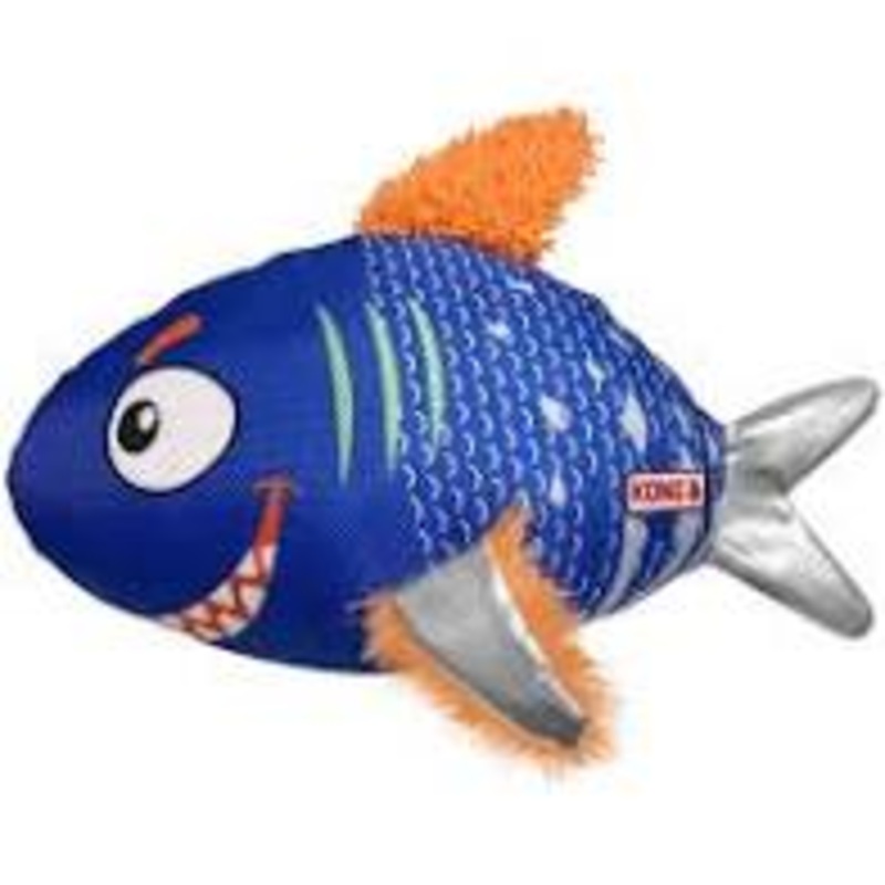 KONG Reefz sport multiple textures that reward instinctual chewing behaviors. The durable KONG Ballistic material and flat, floppy bodies spark thrashing fun. Squeakers make sure dogs take the bait and keep playing with their irresistibly shiny aquatic fri