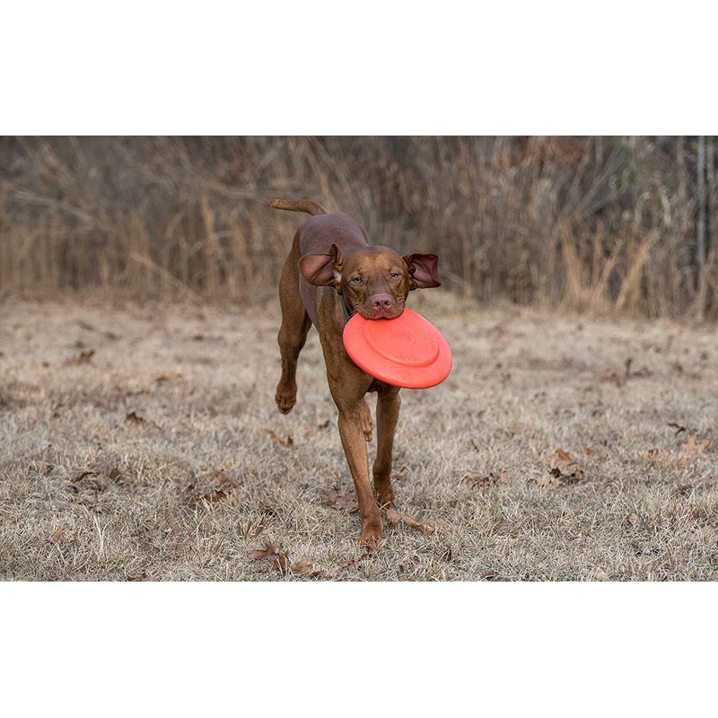 • FLOATS- IDEAL FOR PLAY ON LAND AND IN WATER: This flyer dog toy is made in a distinctive orange color that is easy to spot on land or in the water. Flyer also floats for water retrieval