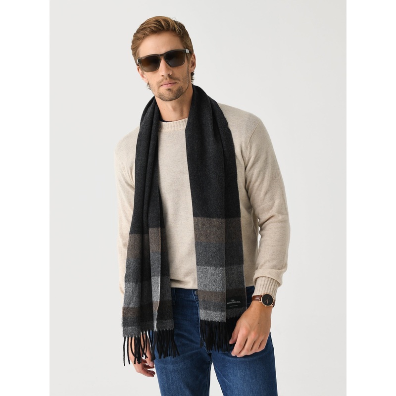 DESCRIPTION:A striped scarf made from a woven blend of wool and cashmere with fringe edges.