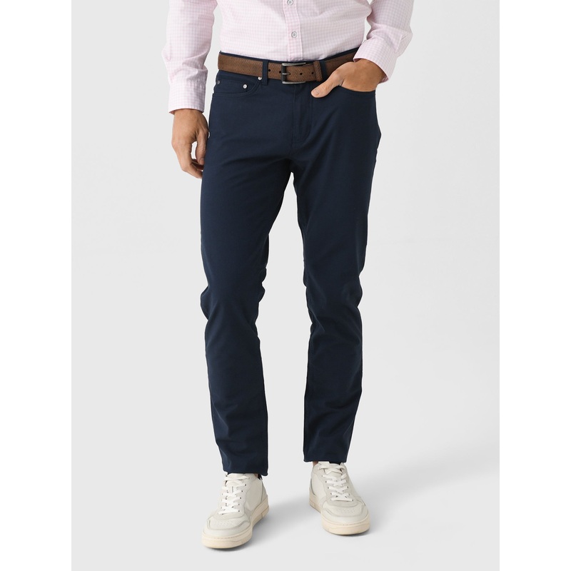This stretchy cotton pant features five-pocket styling and a classic straight-leg silhouette.