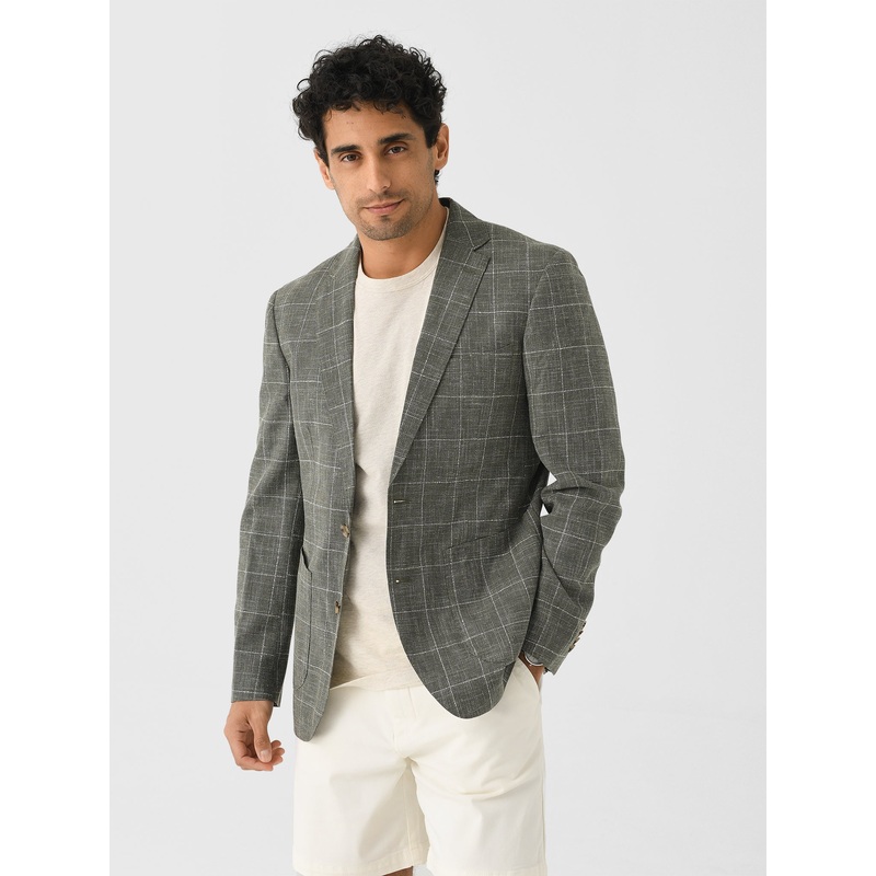 This tailored blazer is crafted from a premium Italian wool blend, it features a modern sports fit and timeless details that exude confidence.