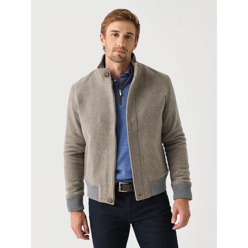 DESCRIPTION:A refined bomber-style jacket made from a premium wool blend and finished with a sleek zip closure and practical pockets.FEATURES:Stand-Up CollarSide Zip PocketsInterior PocketsFull Zip ClosureButton at Neck and HemBanded Cuffs and Hem55% Recyc