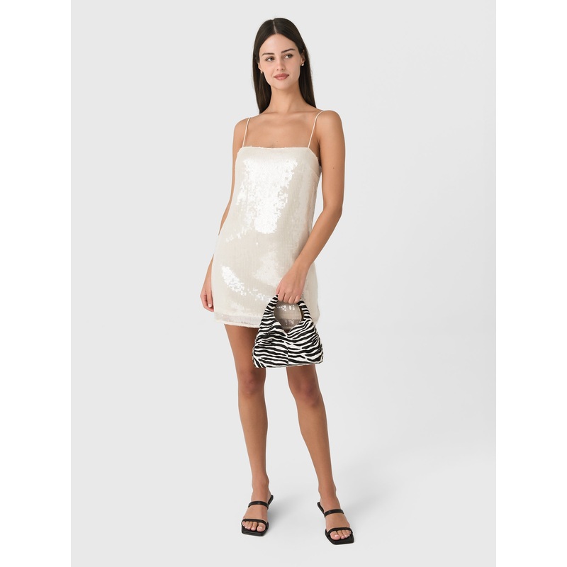 DESCRIPTION:This eye-catching mini dress features a straight silhouette, delicate spaghetti straps, an all-over sequin embellishment, and a squared neckline. A concealed side zipper ensures a seamless fit.FEATURES:Square NecklineThin, Fixed StrapsSide Zip
