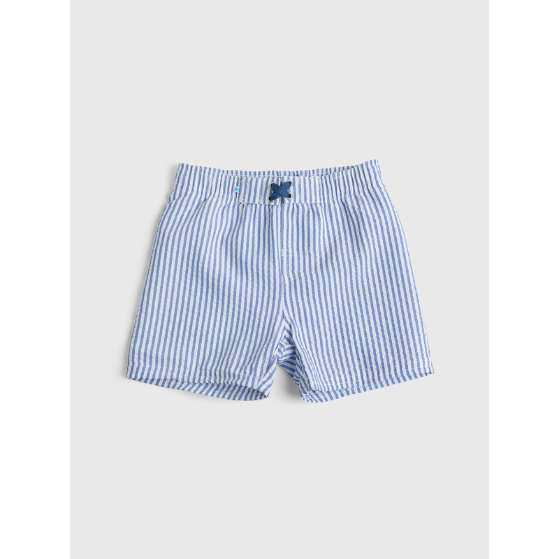 Striped seersucker swim trunk with a comfortable mesh lining and added sun protection technology.