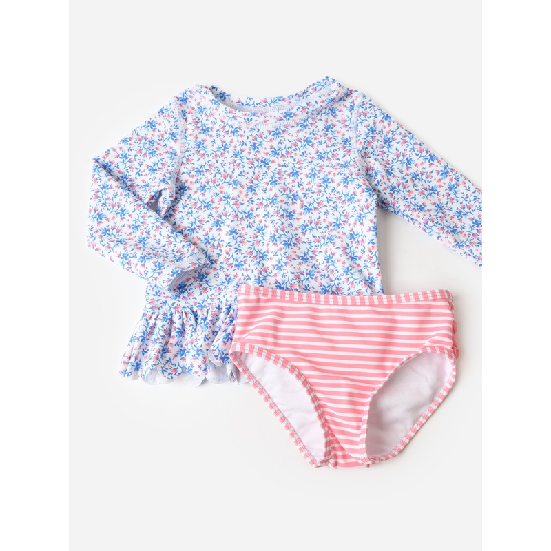 Rufflebutts Girls’ Scalloped Long Sleeve Rash Guard Bikini Set