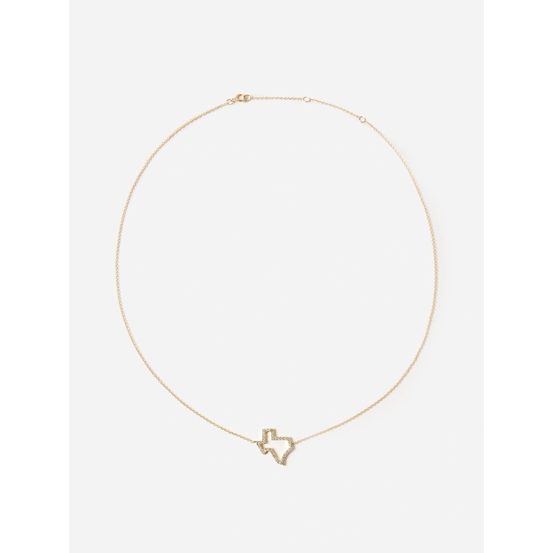 DESCRIPTION:A 14-karat yellow gold necklace featuring an open Texas pendant with pav diamonds.FEATURES:Clasp Closure14k Yellow GoldPav DiamondsOpen Texas PendantAdjustable Length: 18 in. + 3 in. ExtenderOne Size