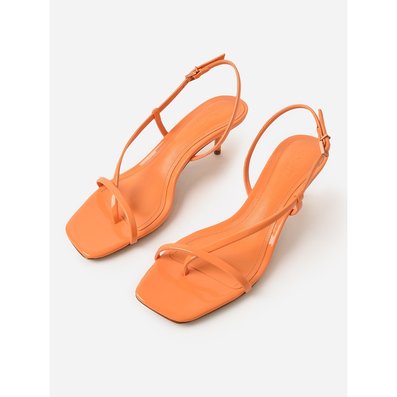 DESCRIPTION:A strappy slingback sandal with a low kitten heel and adjustable ankle strap.