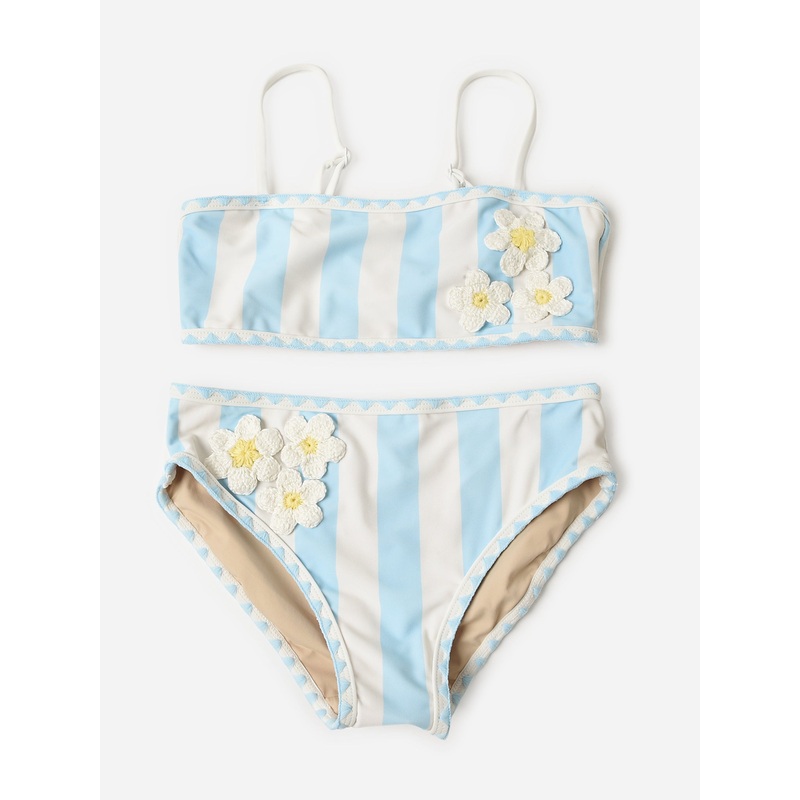 DESCRIPTION:A two-piece bikini set with crochet detailing and a two-tone striped print.FEATURES:Square NecklineThin, Adjustable StrapsMatching BottomCrochet DetailingFull CoverageAll-Over Novelty PrintUPF 50+ Sun Protection80% Nylon. 20% SpandexClassic Fit