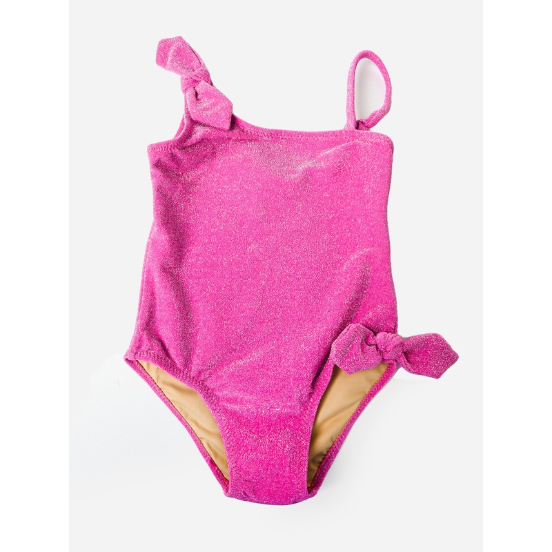 DESCRIPTION:A shimmery one-piece swimsuit with bow details and a one-shoulder style.FEATURES:One Shoulder StyleAdjustable StrapBow DetailsFull CoverageUPF 50 Sun ProtectionLuxe Shimmer FabricationNylon/PolyClassic Fit