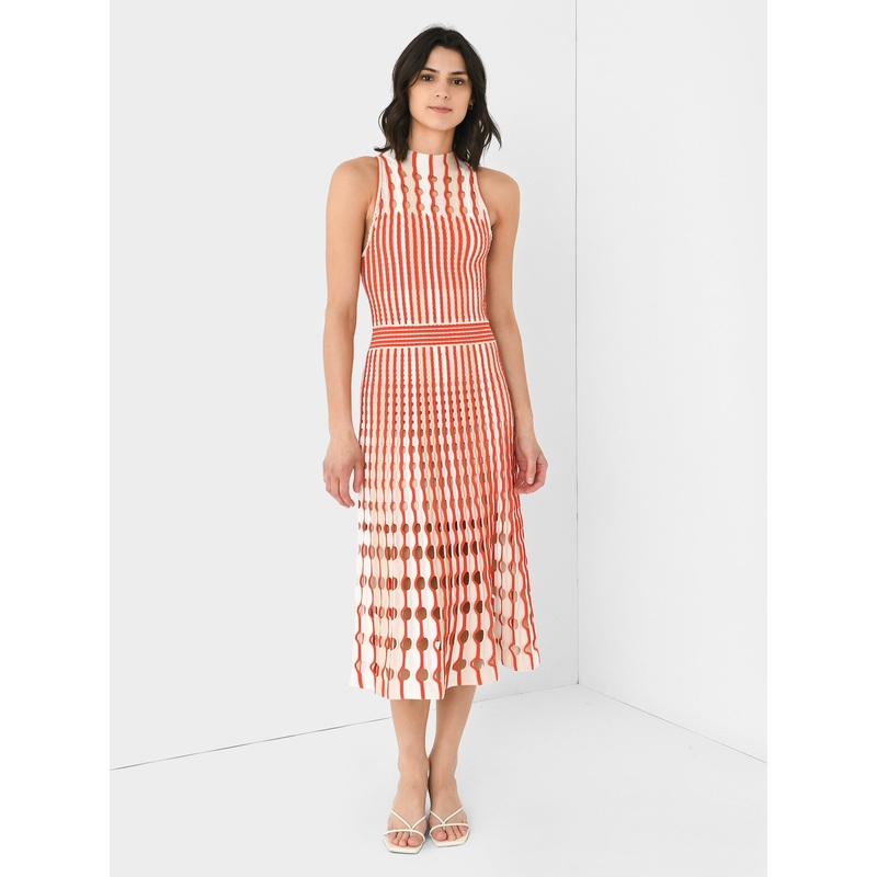 DESCRIPTION:A sleeveless, mock-neck midi dress cut from two-tone open-knit crochet fabric.FEATURES:Mock NecklineSleevelessBanded WaistPartial LiningMidi SilhouetteOpen Knit Fabrication83% Rayon, 17% PolyesterClassic FitModel is wearing size Small dress.Mod