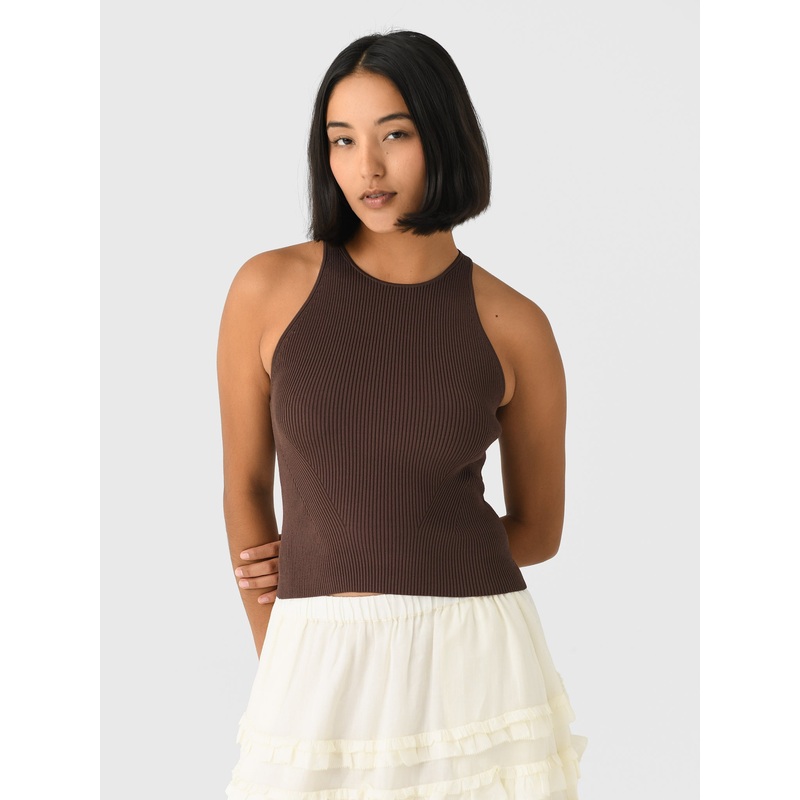 This fitted tank top is made from fine ribbed knit fabric with a cut-in racerback design.