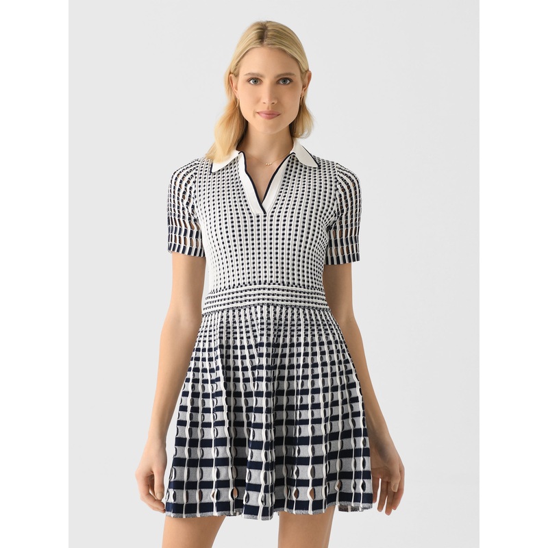This polo-inspired dress is made from a stretchy open-knit fabric and features a classic gingham print.