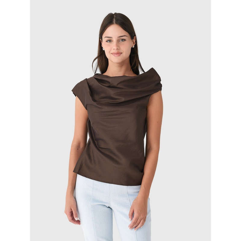 This blouse offers a sleek, close-cut silhouette in lustrous polyester satin. The sleeveless design drapes beautifully, making it an effortlessly versatile piece for pairing with your favorite jeans and skirts.