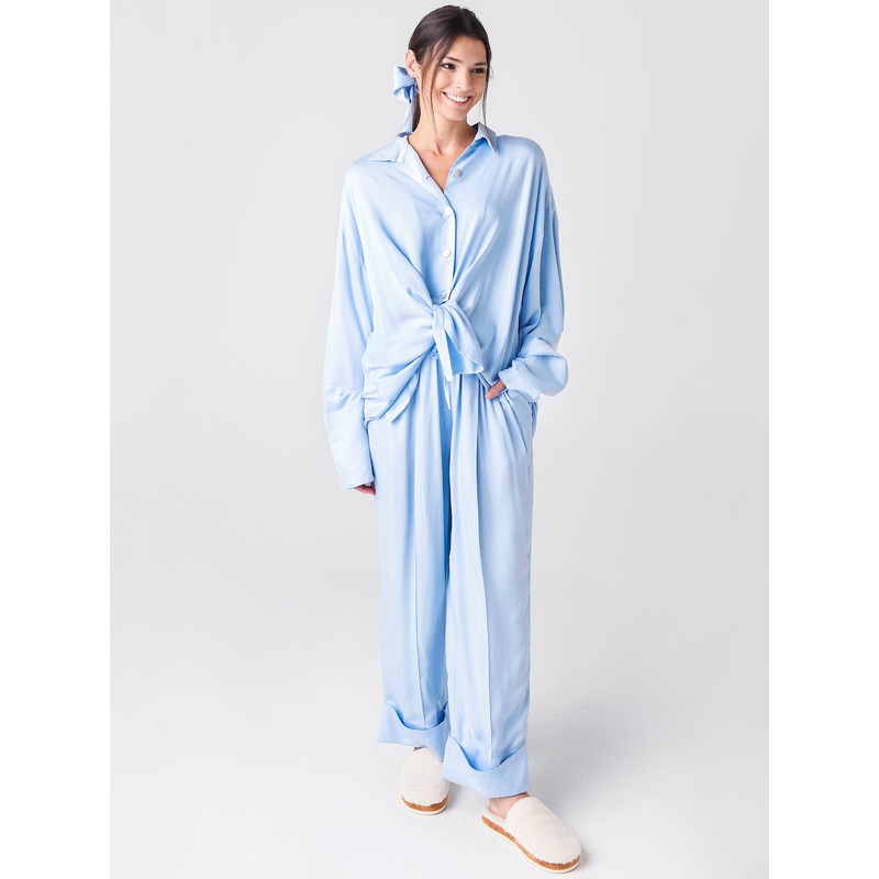 DESCRIPTION:Sleep soundly and be fabulous in the Sleeper Women's Sizeless Viscose Pajama Set, this set is a versatile option for your feel-good wardrobe!FEATURES:Pajama Set; 2-PieceButton-Down BlouseLong SleeveSelf-Tie HemElasticated WaistbandWide LegDrape