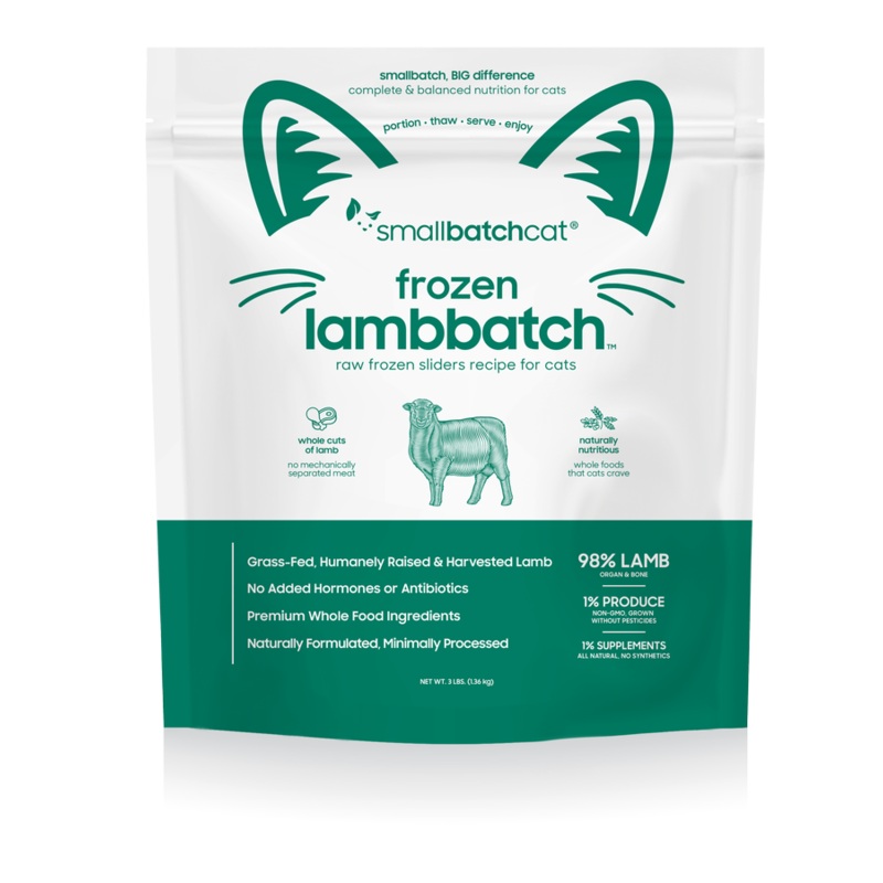 Complete and Balanced Smallbatch Cat lamb Recipe Sliders is formulated to meet the nutritional levels established by the AAFCO Cat Food Nutrient Profiles for all life stages. FEEDING GUIDELINES