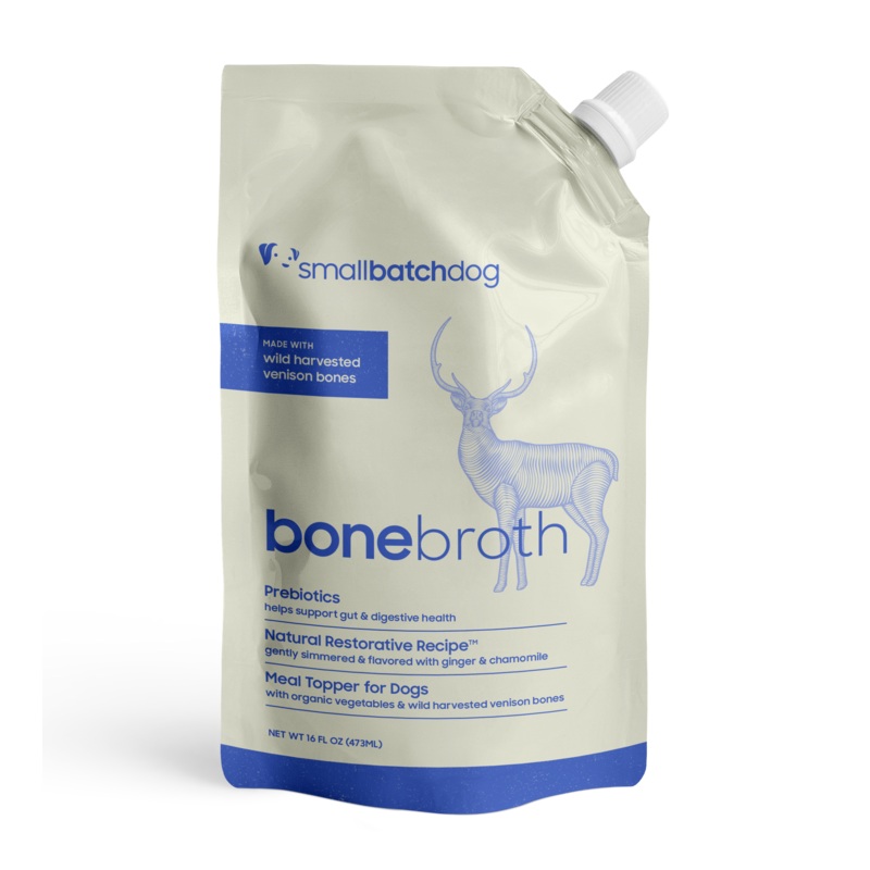 Smallbatch Wild Harvested Venison BonebrothCertified organic & wild caught proteins, prebiotics, & functional herbs in a natural Restorative RecipeA thoughtful and proprietary farm-to-table approach to shelf stable bone broth. High quality single source pr