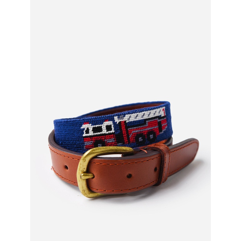 DESCRIPTION:Leather belt with a fire truck needlepoint design.FEATURES:BeltHand-Stitched NeedlepointFull Grain, Vegetable Tanned Italian LeatherSolid Brass BuckleWidth: 1 in.