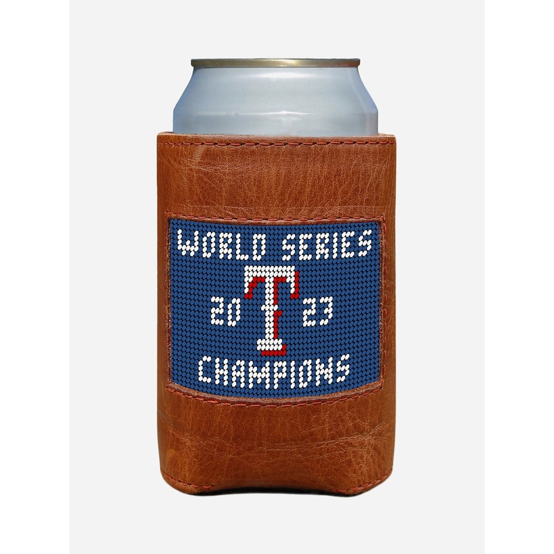 DESCRIPTION:A full-grain leather can cooler with a Texas Rangers 2023 World Series needlepoint design.FEATURES:Can CoolerHand-Stitched NeedlepointFull Grain, Vegetable Tanned Italian LeatherNeoprene LinerOne Size