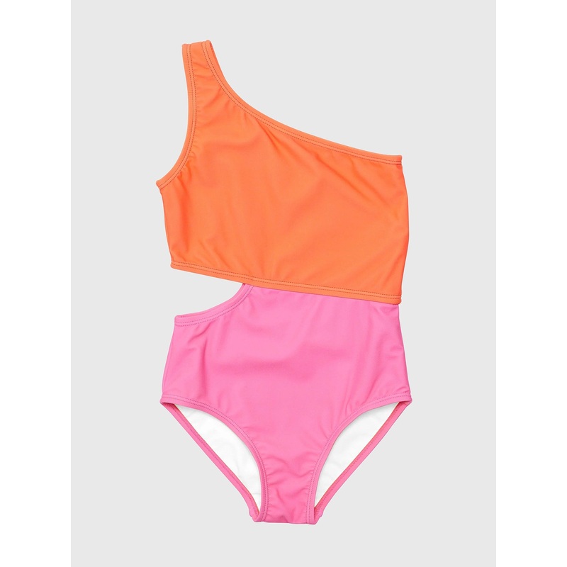 DESCRIPTION:A one-shoulder swimsuit with a side cutout and a vibrant color block design.FEATURES:One Shoulder NecklineSide CutoutColor Block DesignFull CoverageUPF 50+ Sun ProtectionPolyester BlendClassic Fit* Removable Padding (Sizes 14 & 16)