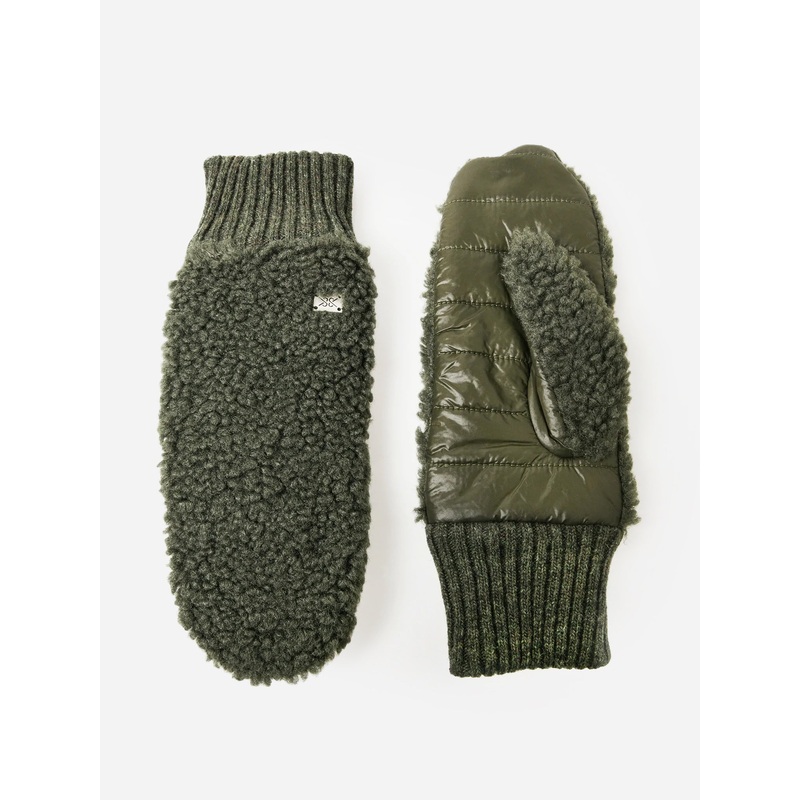 DESCRIPTION:Faux sherpa mitten with a quilted puffer palm.FEATURES:Ribbed CuffTop: Faux SherpaPalm: Quilted PufferPolar Fleece LiningShell: 100% Recycled Polyester | Combo: 100% Recycled Nylon