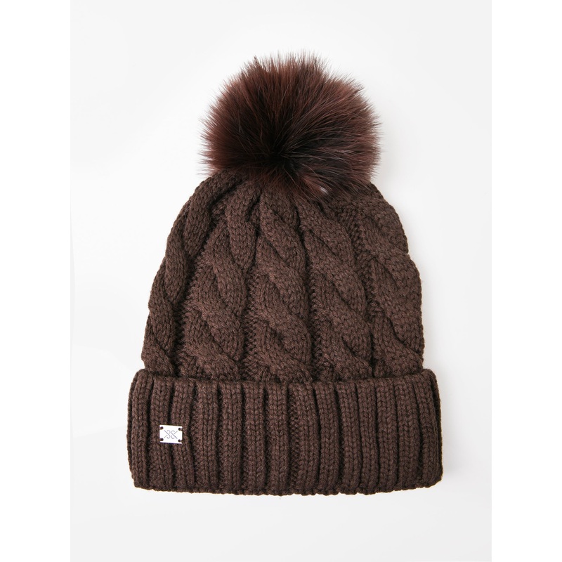DESCRIPTION:Cable knit beanie with a detachable feather pom.FEATURES:Turnback CuffDetachable PomCable Knit FabricationShell: 50% Wool, 50% Acrylic | Pom: FeathersOne Size