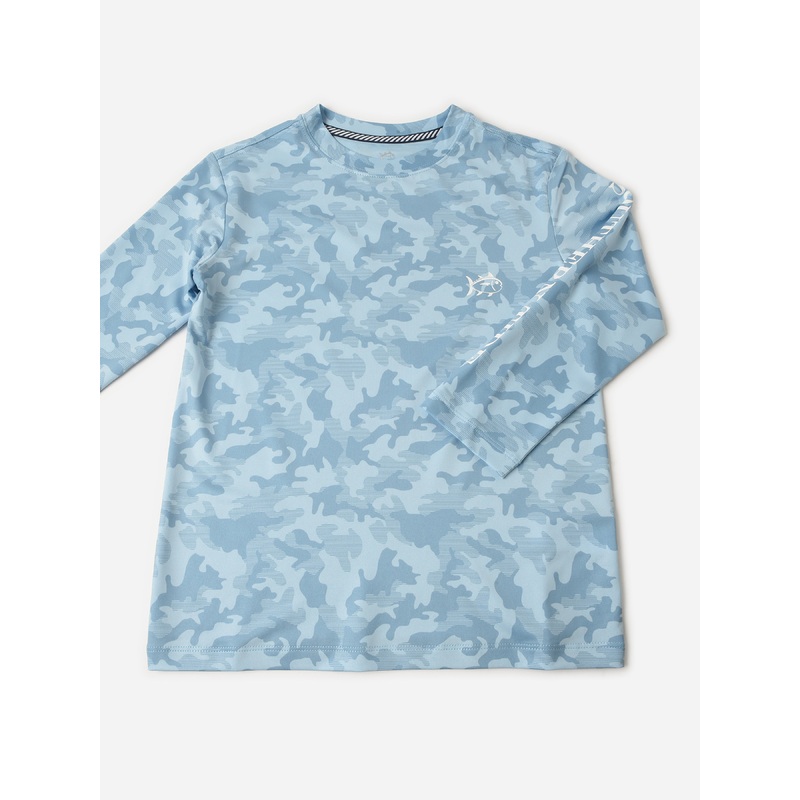 A breathable, long-sleeve tee made from lightweight performance fabric with a custom camo print.