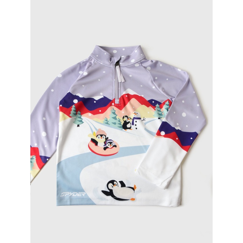 A printed half-zip made from soft moisture-wicking performance fabric.