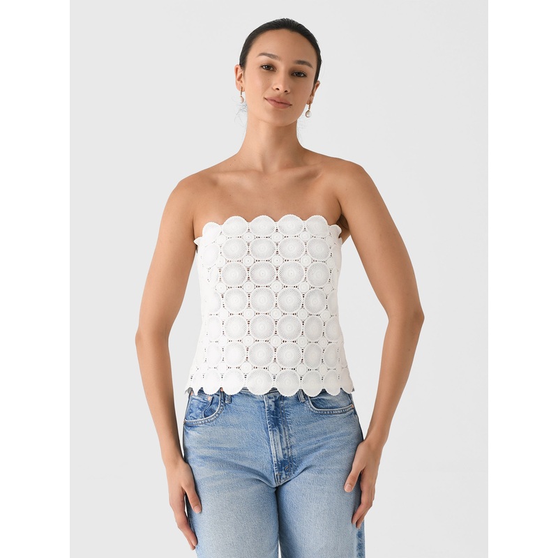 DESCRIPTION:Delicate doily crochet detailing is paired with sweet scalloped edges, creating a unique blend of vintage-inspired artistry and contemporary minimalism. This top is a distinctive piece that adds character to any streamlined wardrobe.FEATURES:St
