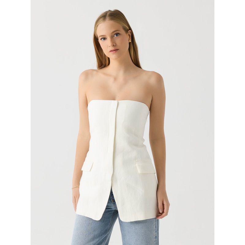 DESCRIPTION:Combining timeless elements with modern design, this strapless top boasts a flattering silhouette with functional details like welt pockets and a hidden zip closure.FEATURES:Strapless NecklineFlap PocketsHidden Front Zip ClosureBack Split HemLo
