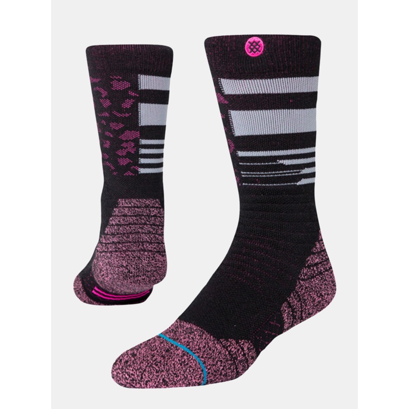 DESCRIPTION:Hot pink & black print and moderate cushion will make this a young girls sock of choice for all those winter activities.FEATURES:Hitting right below the knee, this height covers the entire lower leg.Moderate cushioning throughout the sock for a