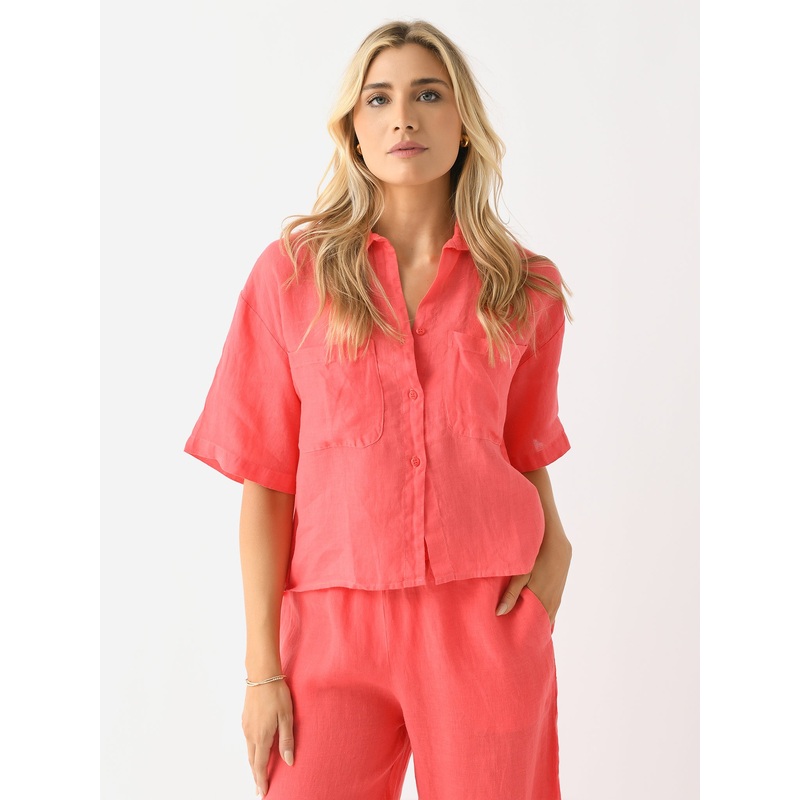 DESCRIPTION:A relaxed button-down top made from airy linen fabric.FEATURES:Spread CollarDropped ShoulderPatch PocketsButton-Down FrontShirttail Hem100% LinenRelaxed FitModel is wearing size Small top.Model's Measurements: Height: 5'9" | Bust: 34B | Waist: