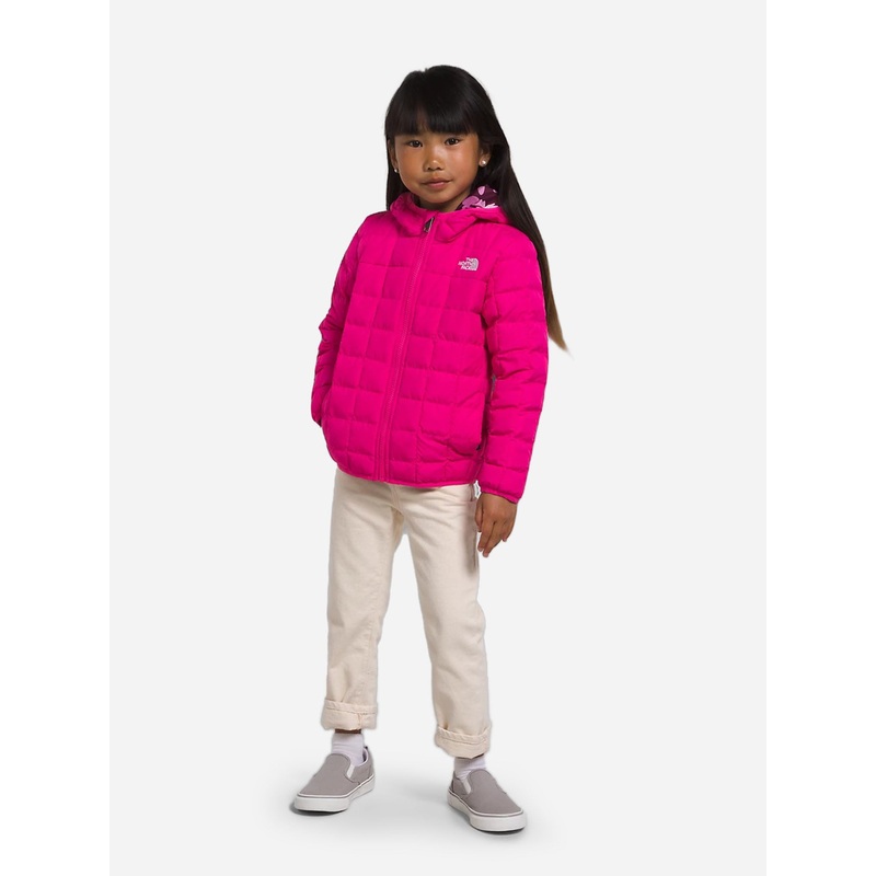A lightly insulated jacket with an attached hood and a fully reversible design.
