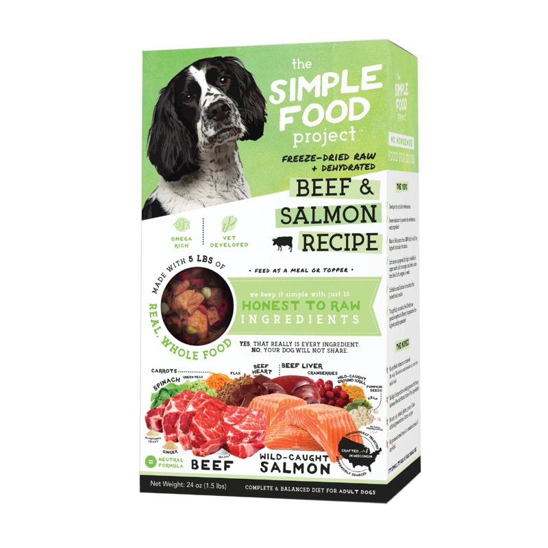 The Simple Food Project Beef & Salmon RecipeEvery pet deserves real food whole, high-quality food that we believe helps all pets thrive.What goes into recipes is every bit as important as whats left out so, using nothing but whole foods, Dr. Bessent formul