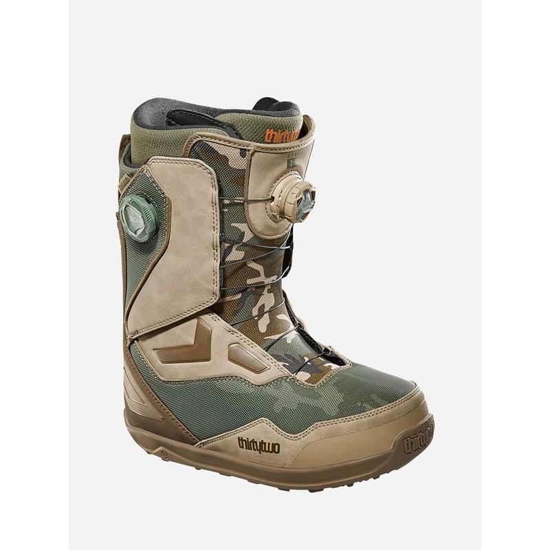 Wide snowboard boot with a stiff flex and a dual Boa closure.