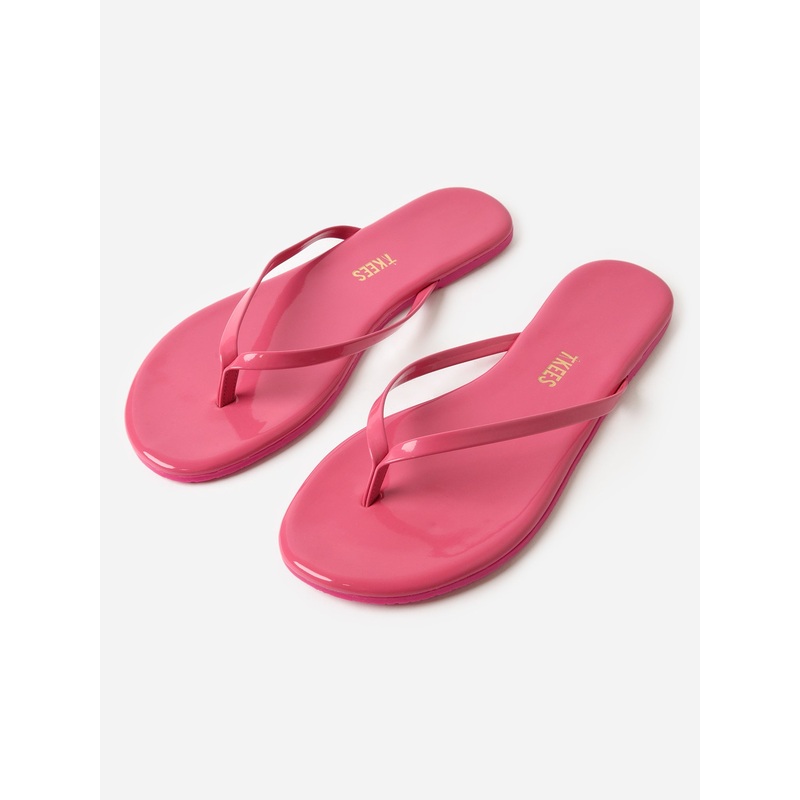 DESCRIPTION:A slim flip flop made from shiny patent leather with a rubber sole.FEATURES:Round ToeUpper & Insole: Patent LeatherCushioned InsoleOutsole: Rubber