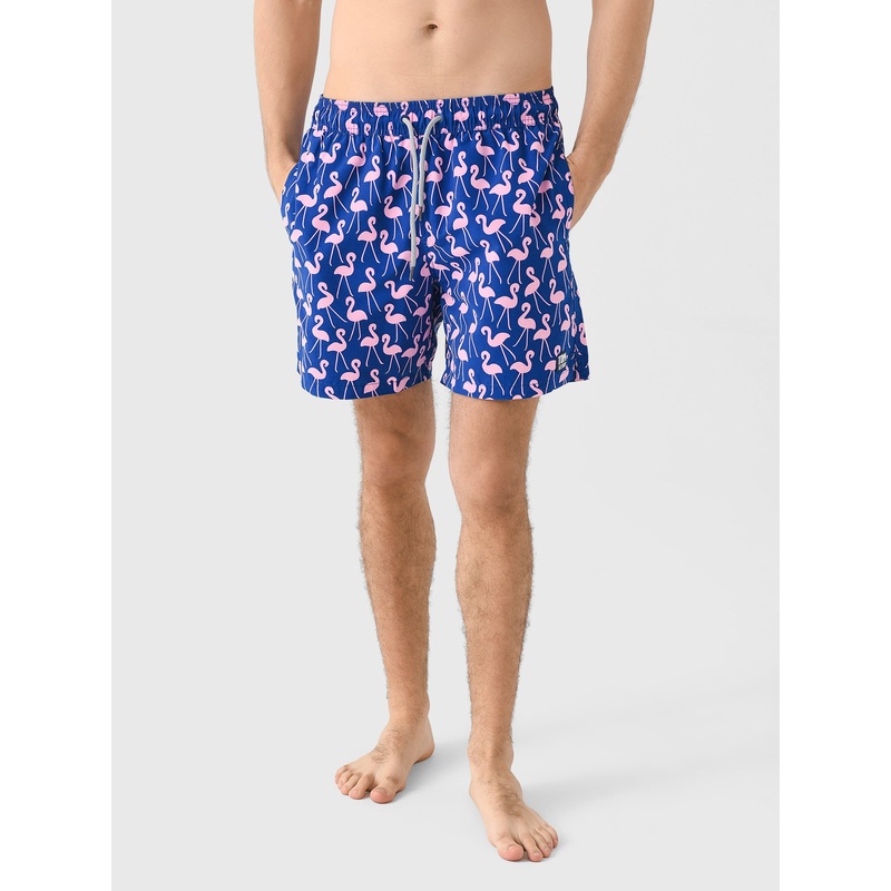A lightweight microfiber swim trunk with a fun flamingo print and sun protection technology.