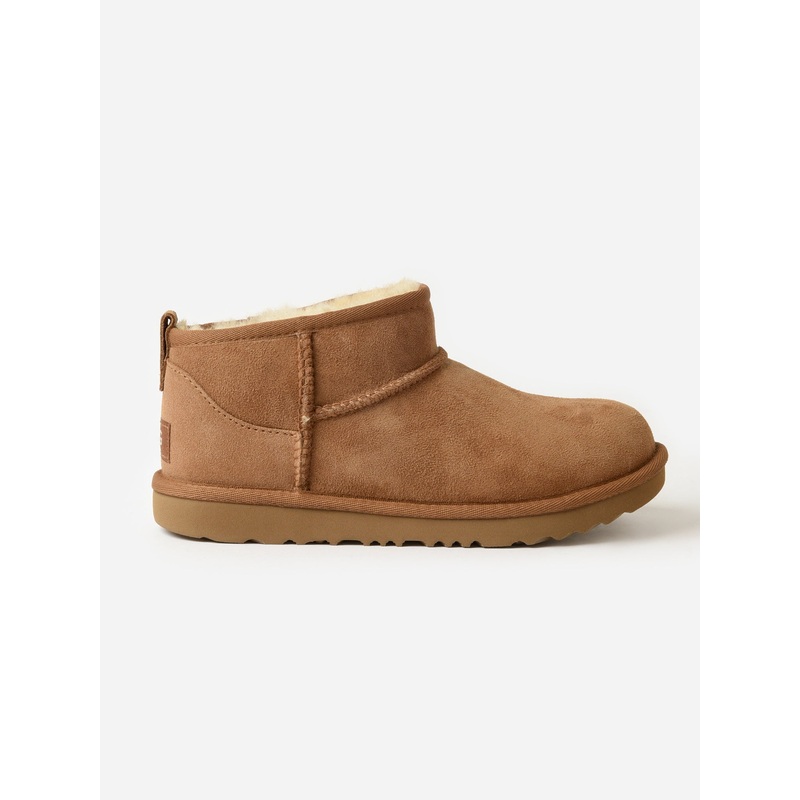 A signature bootie featuring a lower shaft for easy on-and-off. It comes with a pre-treated finish for durability, signature sheepskin lining, an UGGplush insole, and a flexible, lightweight outsole.