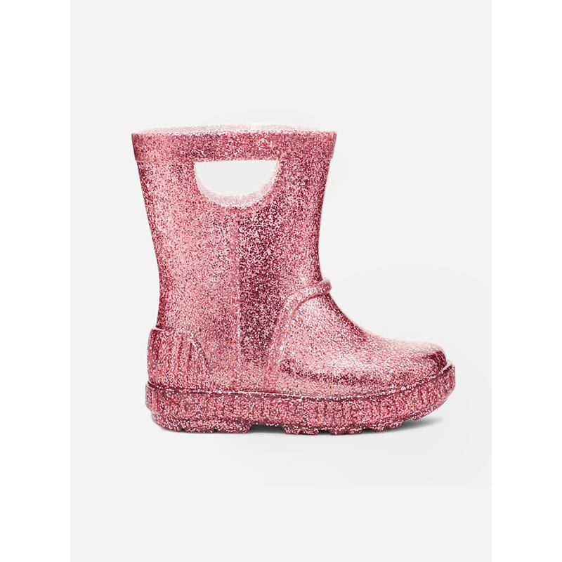 DESCRIPTION:Fully waterproof rain boot made with convenient grab handles and shimmering glitter.