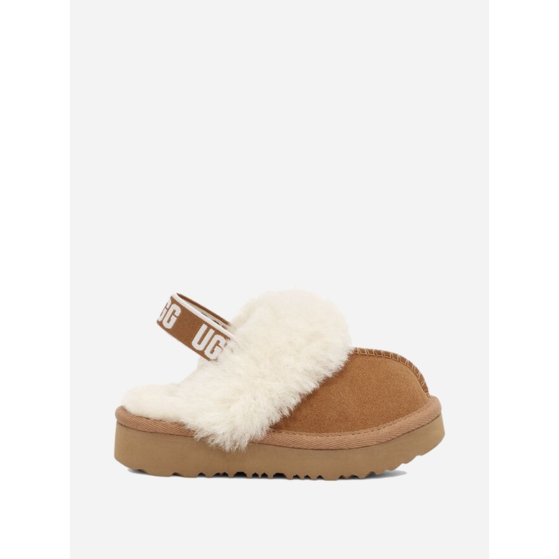 DESCRIPTION:Soft and cozy sheepskin slipper.FEATURES:Round ToeElastic Heel StrapSheepskin CollarUpper: Suede10mm Sheepskin Insole10mm UGGplush 80% Upcycled Wool, 20% Lyocell Vamp LiningMidsole: EVA | Outsole: Treadlite by UGGHeel Height: 0.5 in.