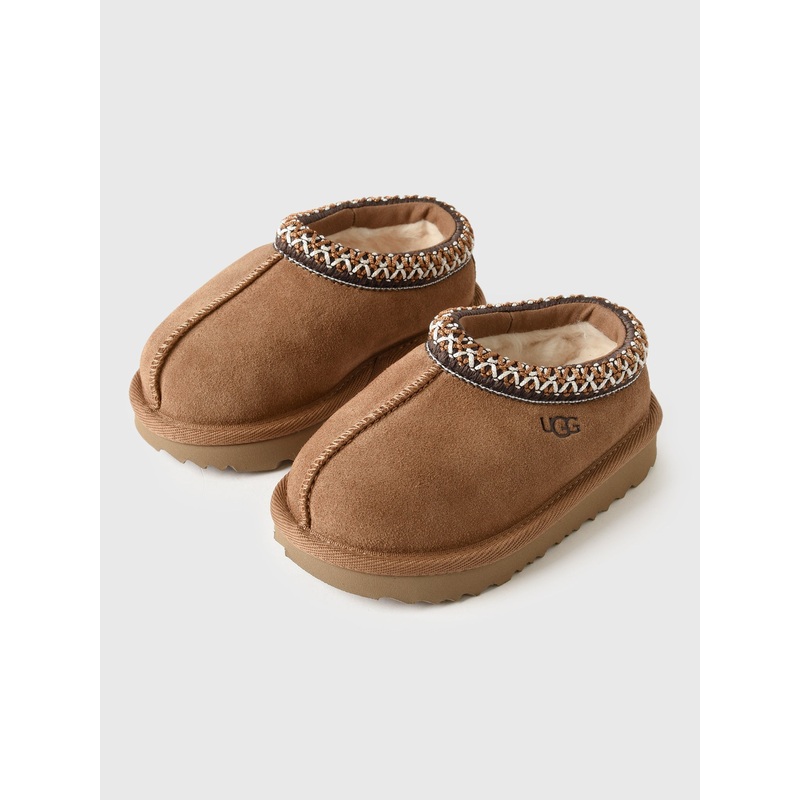 DESCRIPTION:Designed for ultimate versatility, the Tasman functions perfectly as a cozy indoor slipper and a stylish outdoor shoe. Create a matching look for the entire family by pairing them with available adult sizes.FEATURES:Round ToeSuede UpperUGGplush