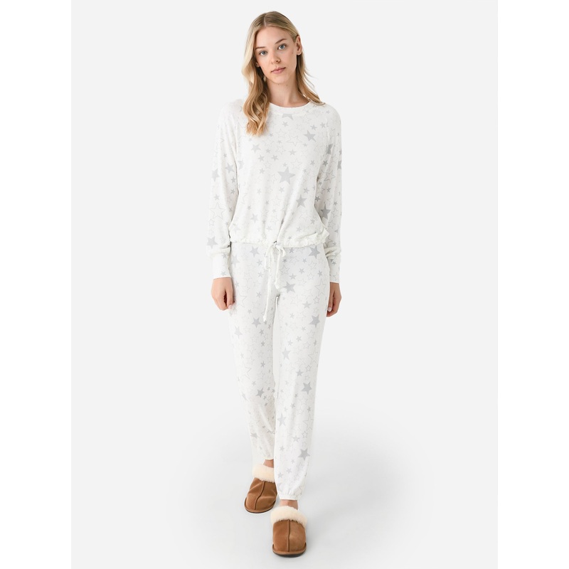 A star-printed pajama set made from a super-soft brushed knit fabric.