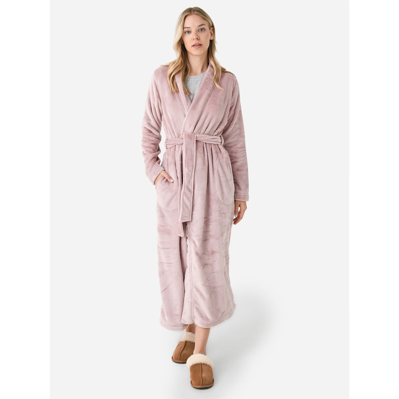 DESCRIPTION:Soft double-face fleece robe.FEATURES:Open FrontSelf-Tie Waist BeltSide PocketsLength: 51 in.Double-Face Fleece Fabrication100% PolyesterRelaxed FitModel is wearing size Small robe.Moonbeam: Model's Measurements: Height: 5'9" | Bust: 32B | Wais