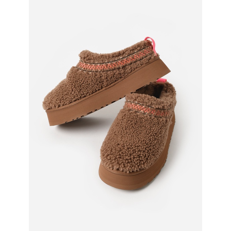 DESCRIPTION:The Tazz gets a plush update with a new curly upper and platform sole with boosted cushioning.FEATURES:Round ToeBack Pull TabEmbroidered BraidUpper: 10mm Curly SheepskinLining: 10mm UGGplush 60% Upcycled Wool, 40% LyocellMidsole: EVAOutsole: Su