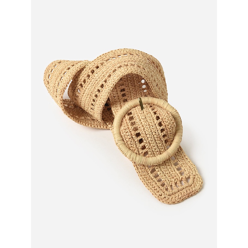 DESCRIPTION:A handwoven Bohemian belt made from natural raffia with an open-crochet design.FEATURES:Pin Buckle100% RaffiaWidth: 2.5 in.Handwoven in Madagascar