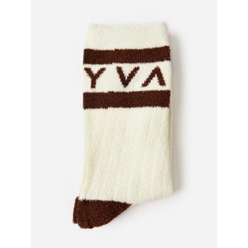A cozy pair of socks made from plush boucle fabric with a Varley logo stripe design.