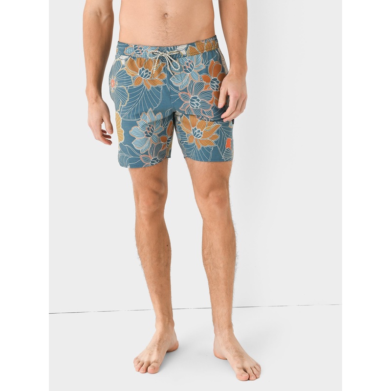 Classic boardshort design with a comfortable elastic drawstring waistband and colorful floral print.